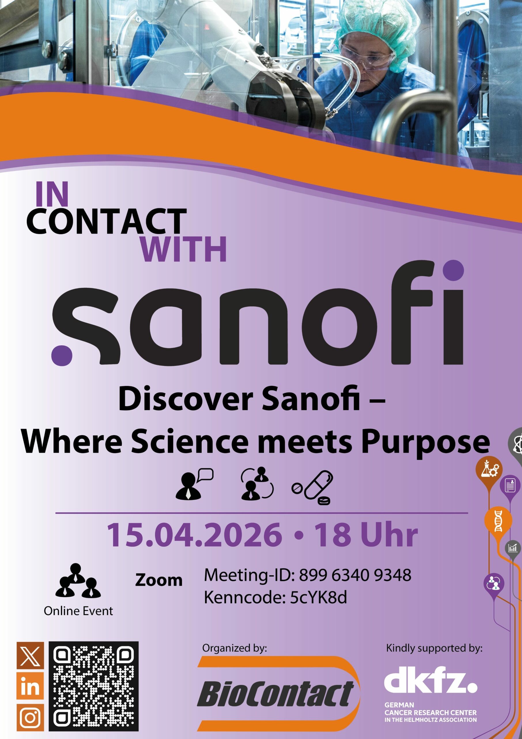 In der Online-Veranstraltung geben Karin Messer (People & Culture, Senior Recruiterin R&D) und Katrin Köhler (People & Culture, Employer Branding & University Relations) von der Sanofi-Aventis Deutschland GmbH Einblicke aus erster Hand. Nutzt die Gelegenheit und knüpft direkte Kontakte zu den Unternehmensvertreter:innen und macht einen Schritt in Richtung Zukunft!